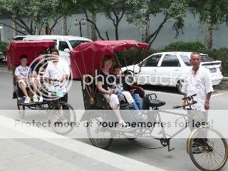 Another ride took us around more of the Hutong area where we viewed the locals in everyday life; running small street shops, riding bikes as their everyday transportation, or laying about playing what I believe was Majong or Chinese checkers. A little later our tour ended and we said goodbye to our tour guide. Mom and Micah retired to their rooms for a little nap (4 to 5 hours in fact) while Nathan and myself (if I haven’t told you, Daniel is typing this) decided to do a little sight seeing on our own. We visited many shops, malls, and stands along the road, tried the local cuising and drinks and overall had a very fun experience. One thing I noticed is that many people stared at me, not because of my eyes, hair, or color of skin; no, they stared at my feet. I was wearing completely white shoes so I don’t know that had something to do with it or if I just have very large feet. Who knows?